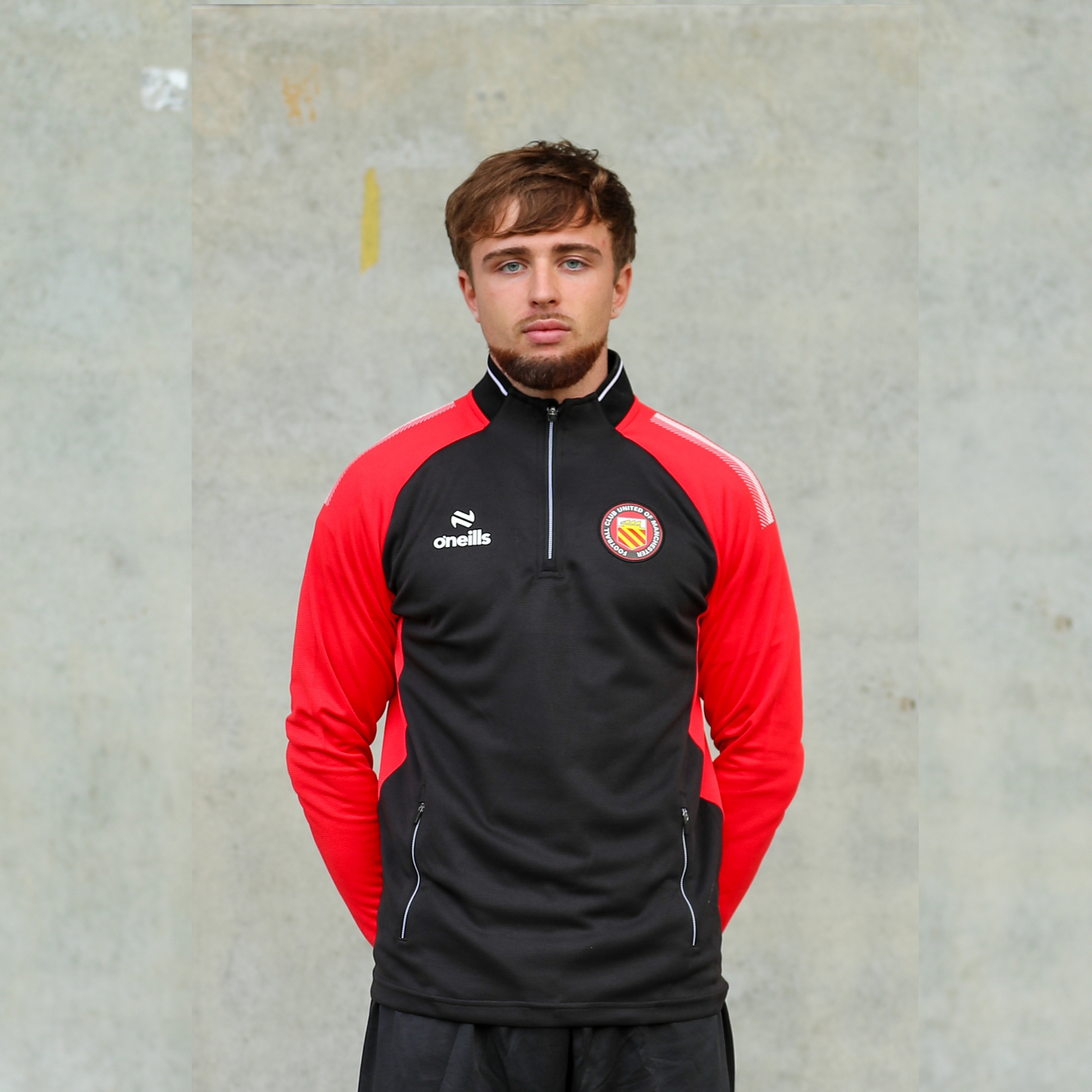 O'Neills quarter zip top in a black & red design with club crest.