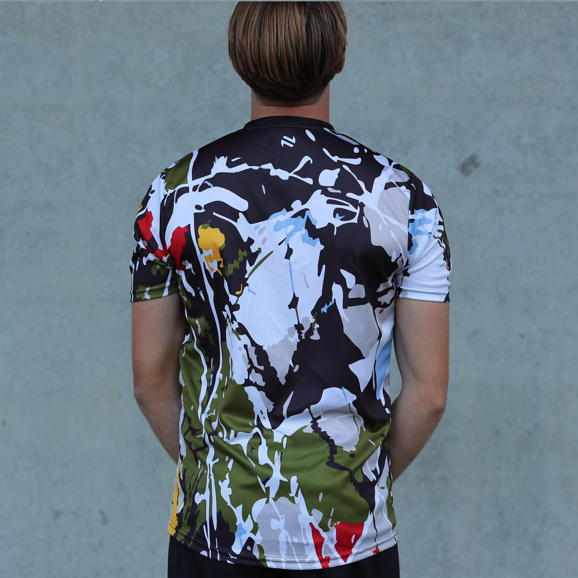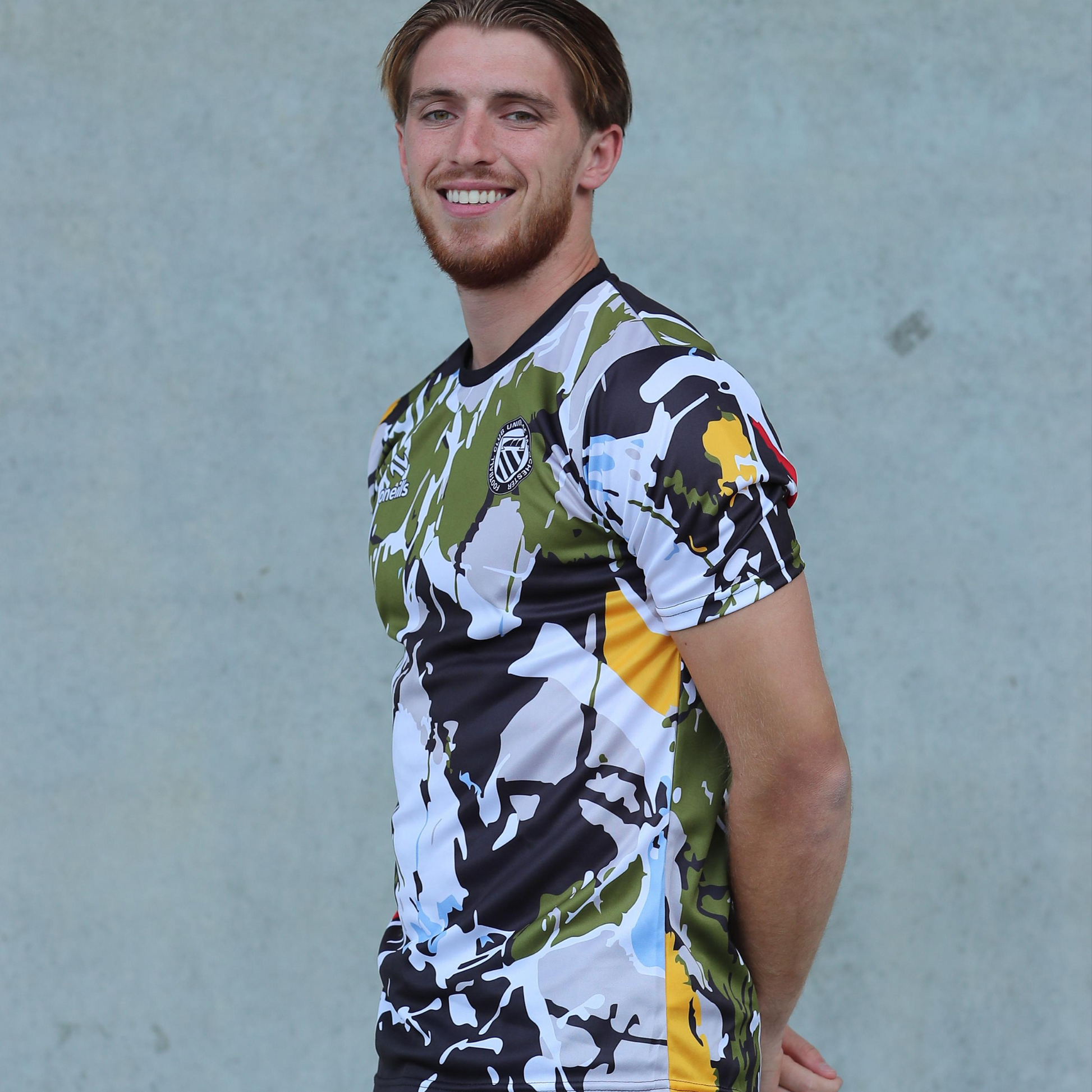 Featuring a bold, all-over print inspired by urban camouflage and abstract expressionism, each splash of color makes a statement on and off the pitch.